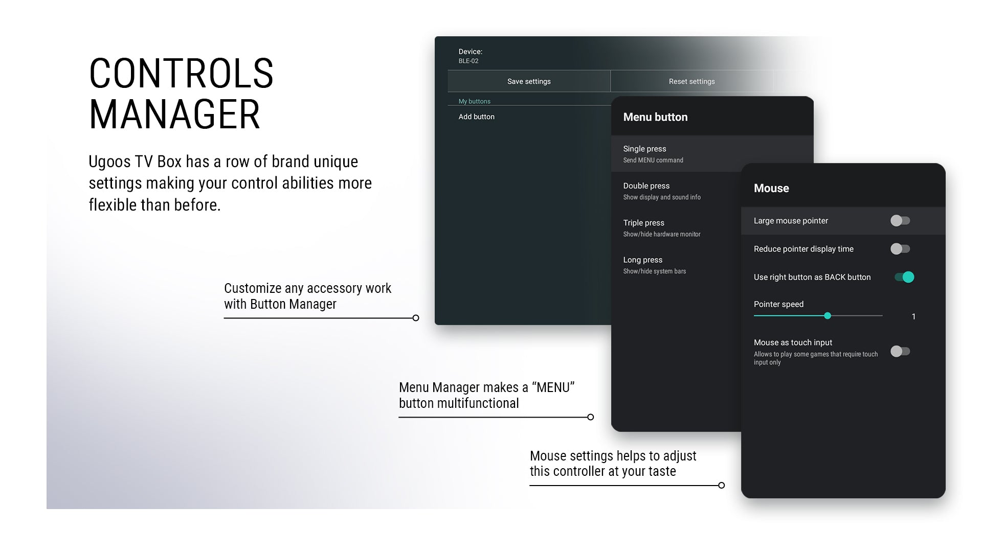 • [Multi-language support and OTA Update] Ugoos SK1 supports multi-language settings, incl. English, Spanish, French, Italian, Chinese, Japanese, etc, offering fantastic experience of native language. Over-the-air updates enable you to be the first to know an update. Stay connected, and system will install automatically. List of features will be continuously increased in future OTA udpates where you get no similar opportunity on other devices