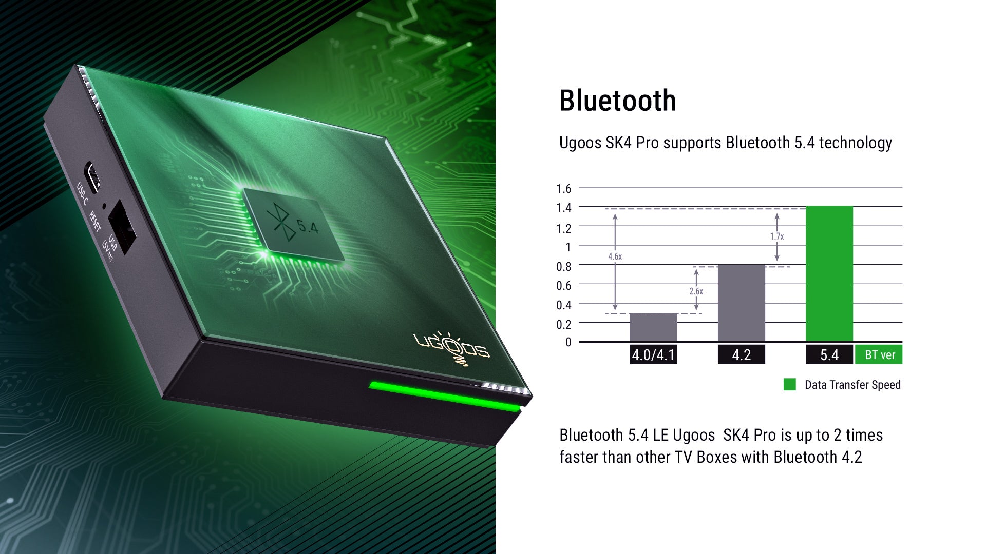 The Ugoos SK4 PRO is the upgraded version of the SK4. The CPU has been upgraded to the Amlogic S905X5M-K CPU. SK4 Pro adds DTS and Widevine L1 support. SK4 pro supports DOLBY VISION and has 4GB RAM and 64GB memory.